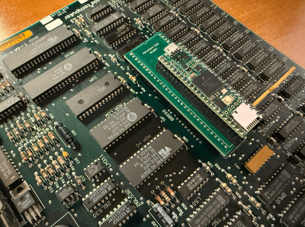 The Macintosh runs the CPU at almost 8 MHz and was a real challenge to get the Teensy 4.1 to bit-bang the local bus at that speed. I believe there are still signal integrity issues at the local bus interface so I chose to emulate the Mac’s 512K of RAM and the BIOS ROM inside of the Teensy to guarantee error-free operation. You may be able to see random dots around the screen which I believe are due to stray bus cycles writing to the video memory. These are harmless.