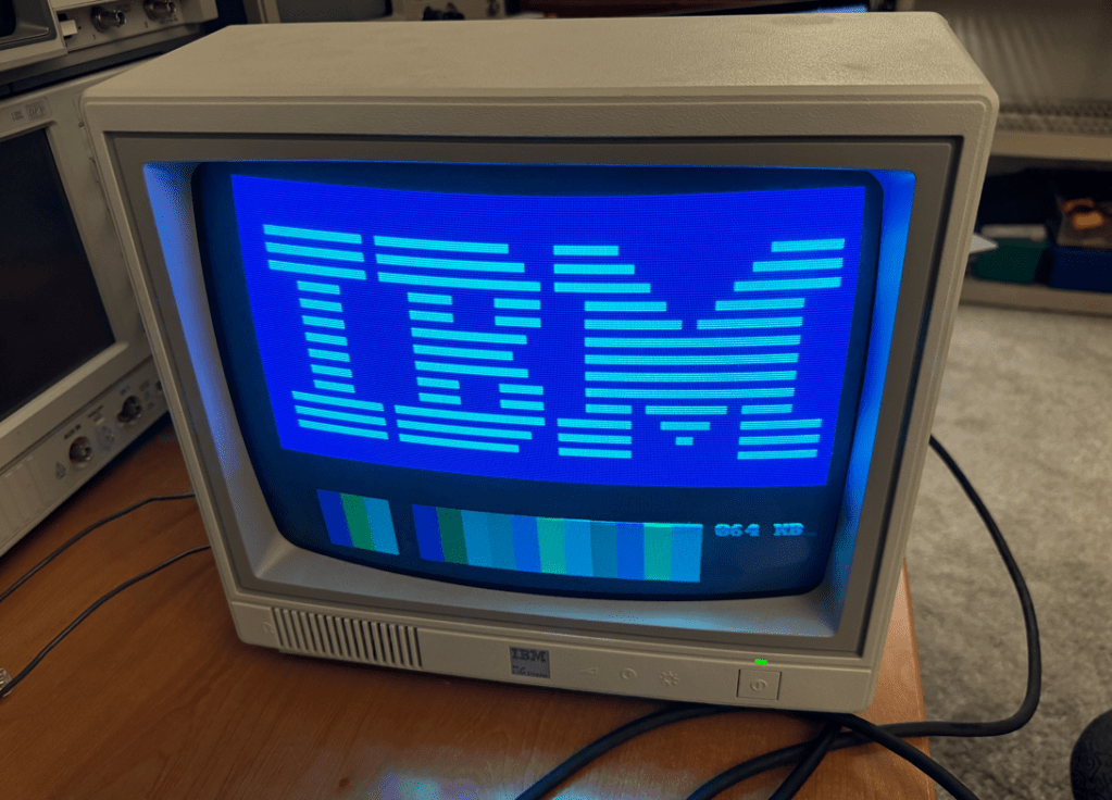 I took my IBM PCjr and its display out of storage, powered it up, and encountered this: