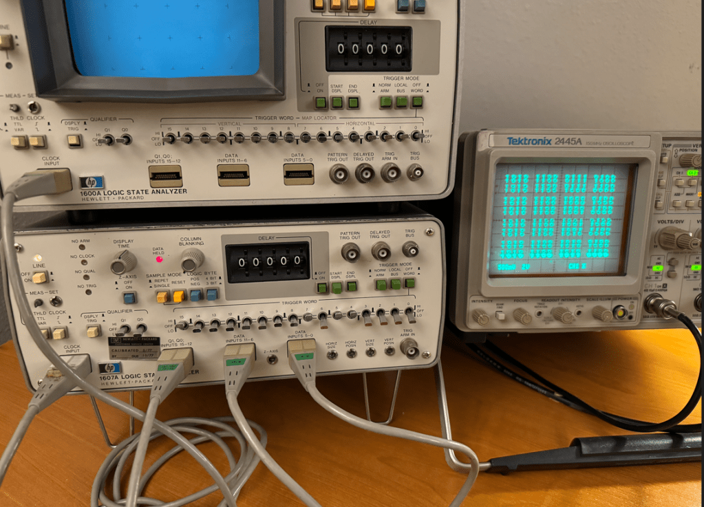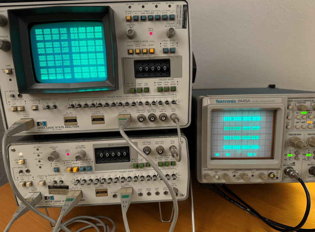 The HP 1607A, however, was not able to send a sync signal on the Z channel, so in this case I do think there is an issue with its power supply likely due to dry caps. I will debug this machine some other time…