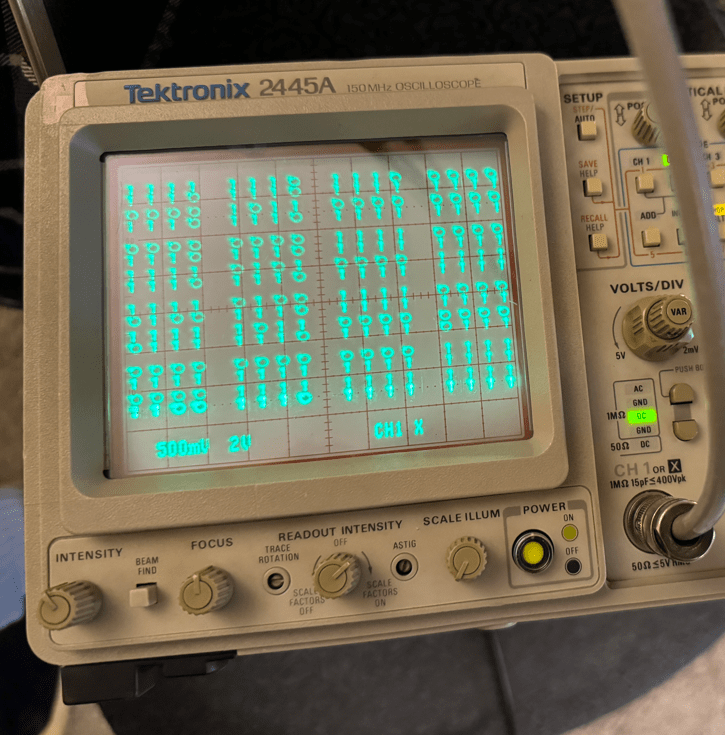 When seen in real life the image has a very pleasant shimmers. Im guessing it may be because I am sending screen refreshes faster than the machine expects or was designed to handle, but is any case it looks nice… 🙂