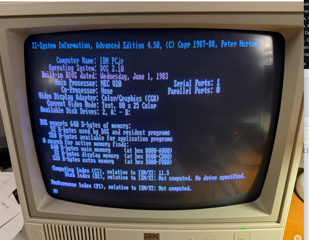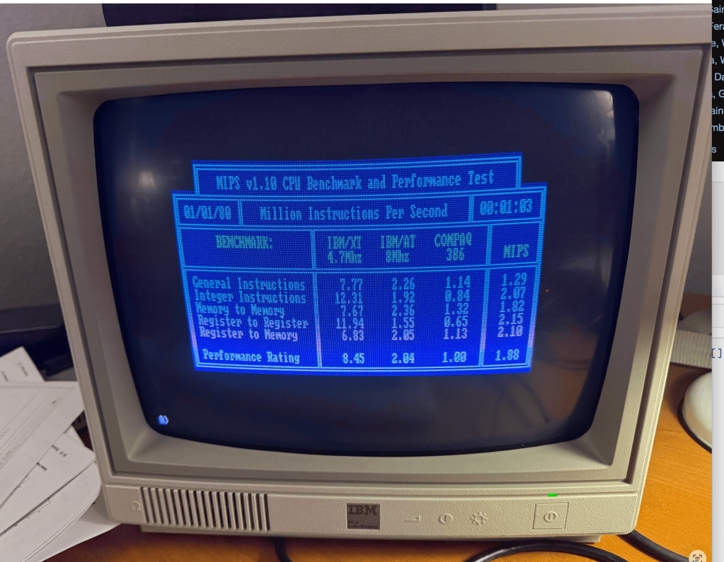 Cycle accurate mode appears to work fine so I next added some acceleration by removing clock counting and mirroring all 640 KB inside of the Teensy. According to MIPS.COM, this IBM PCjr is as fast as a 80386.