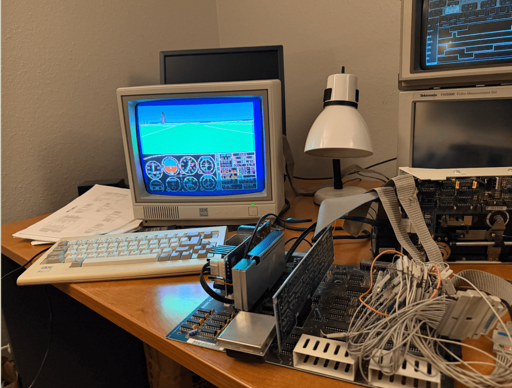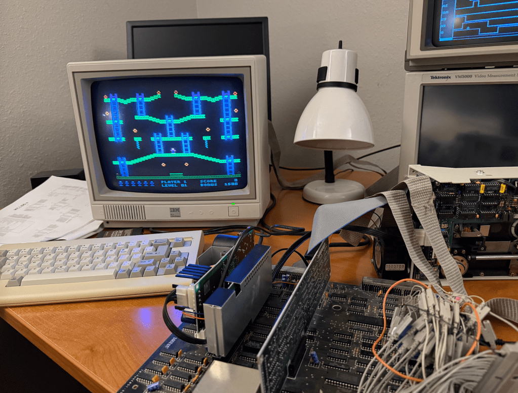In the BIOS POST CRT Attachment Test the MCL86jr+ would fail with ERROR 0908 and halting. Once I compared the sequence on a logic analyzer with a genuine 8088 I could see that the MCL86+ was performing opcode prefetches at the end of opcodes while the real 8088 interspersed them throughout the opcode execution. This resulted in the MCL86jr+ opcode execution being “tighter” and ready to accept interrupts earlier than the genuine 8088 could.